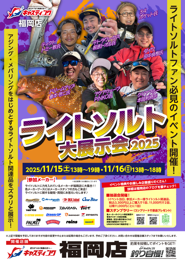 アジング・メバリングをはじめとするライトソルト関連商品をズラリと展示します!!